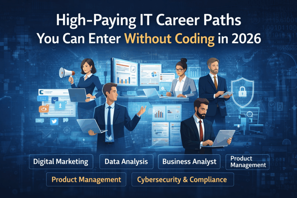 The IT industry is no longer limited to programmers and software developers. As technology continues to evolve in 2026, many well-paid IT roles focus more on strategy, analysis, communication, and digital tools rather than coding. This shift has opened the door for students, working professionals, and career switchers who want to enter the tech industry without learning programming languages.